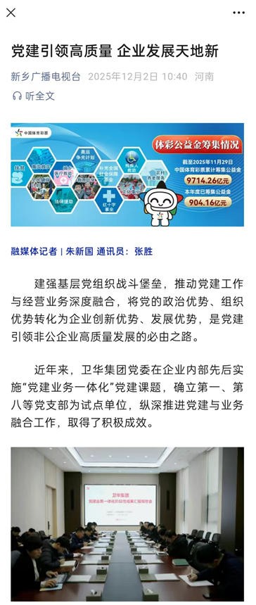 今年5月,新乡日报调研团队在走访卫华集团期间,就党群工作进行了深入交流。调研团队对卫华党建工作给予高度评价,特别是对党建工作群中活跃的学习动态表示赞赏。